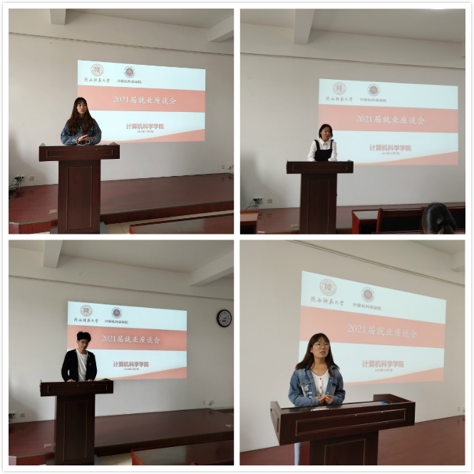 首先,张园园、卢臻玄、张晓燕、吴佳贞、康倩以及马慧慧等6名已经拿到offer的同学分别以自身经历为基础,从了解工作单位、投递简历、准备笔试、参加面试等方面向同学们作了经验分享。