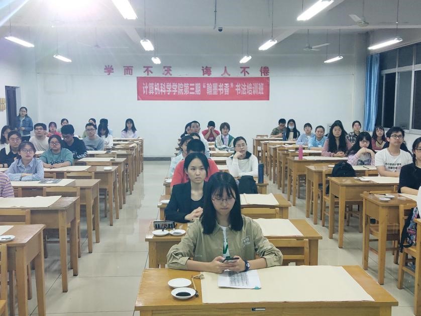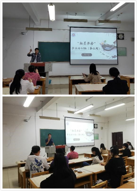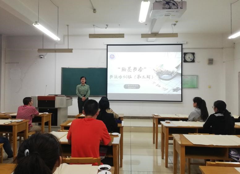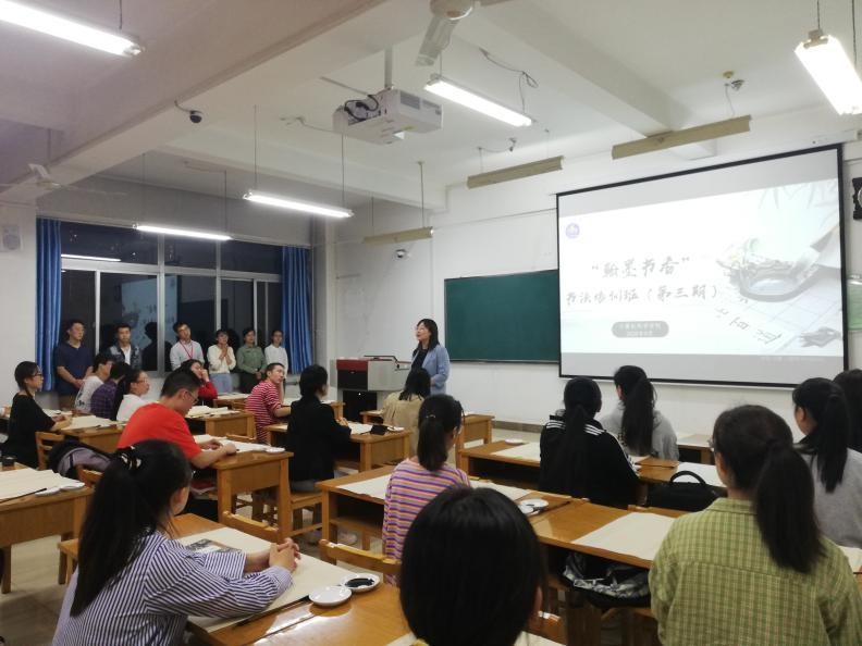 第三期“翰墨书香”书法培训班在文津楼1420正式开班。学院党委副书记袁冰、辅导员陈应权、安琪、崔瑜璠以及五十余名书法班学员参加了本次开班仪式。开班仪式由学院团委书记郭康凌主持。