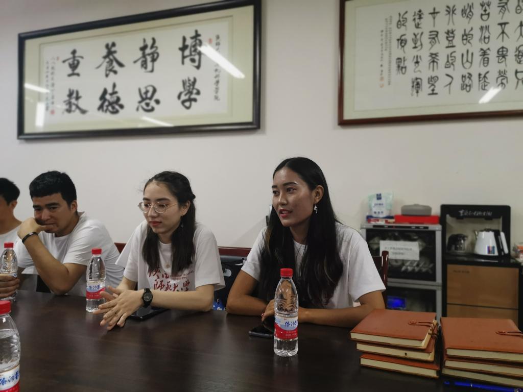 学院领导和同学们进行了亲切的交流,同学们根据自身情况,对自己学习期间的情况做了汇报,阿布都喀地尔同学谈了谈实习期间的心得和体会;阿扎提古丽同学表示自己父亲是一名中共党员,在当地村委工作,自己受父亲影响,积极要求入党,在校期间自己得到了很好的成长,非常感谢学院及老师对自己的培养;穆凯代斯同学表示实习期间的实习指导老师为学院的2013级学长,自己得到了巨大的锻炼和成长,学院的朋辈传承在新疆发展壮大;阿力木同学表示自己实习过程有点曲折,但在求职过程仲,学校给了自己巨大的优势;买买提同学表示非常感谢学院为维吾尔族学生付出的努力和辛苦,普适计算支部的老师给自己很多的功课辅导及学院针对性开展了普通话辅导,提高了他们综合能力和素质;木拉迪同学表示自己是一个民族预科班学生,在读计算机本科期间由于挂科留级,压力很大,在袁冰书记的帮助下摆脱了压力,顺利毕业,感谢学院和各位老师的帮助,铭记在心,期待下次再见。