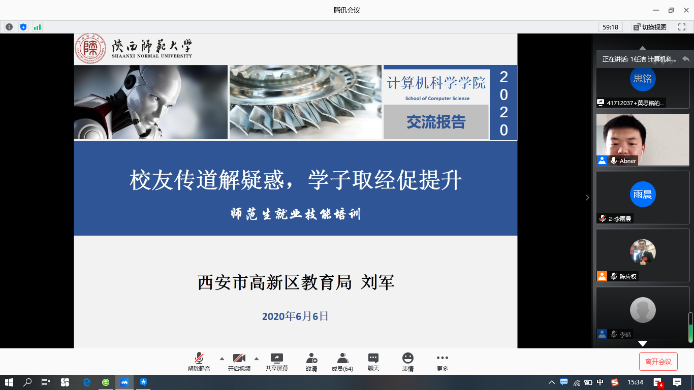 为提高2017级公费师范生的就业技能,加强师范生求职的核心竞争力,增强同学们的求职信心,2020年6月6日下午两点半,学院特别邀请2015届计算机科学与技术专业优秀校友刘军老师为耽美小说