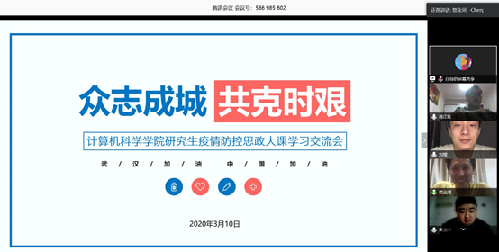 研究生通过腾讯视频会议就“全国大学生同上一堂疫情防控思政大课”进行了学习交流。2018级和2019级全体学生干部和入党积极分子参加了此次学习交流会。此次交流会由研究生辅导员蒋江红老师主持。