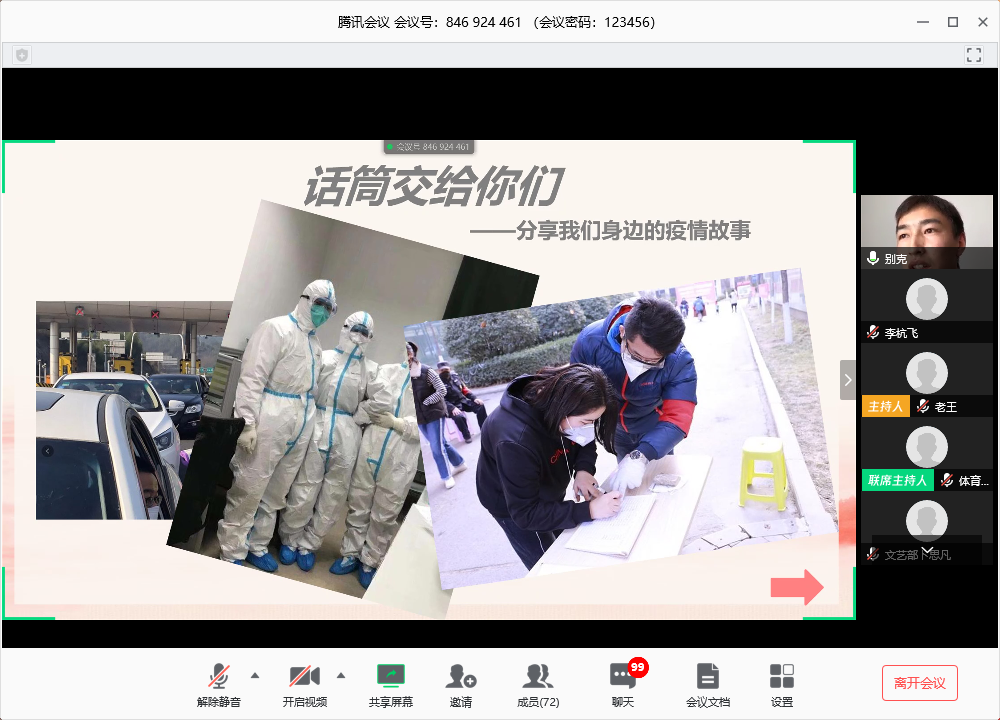 “疫情防控学习”模块中,主持人首先带领同学们一起回顾了习近平总书记在防疫工作部署会上的重要讲话,同时认真学习了共青团中央《关于坚持党的领导,全团动员,在防控疫情阻击战中充分发挥共青团生力军和突击队作用的通知》、教育部给全国大学生的一封信和耽美小说