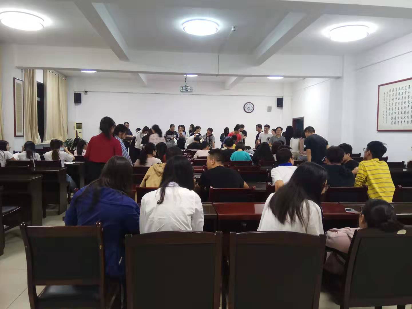 在文津楼3411报告厅召开了2020届毕业研究生就业工作会议。办公室主任贾润泽老师、研究生兼职辅导员段思园、学院2020届全体毕业研究生参加了此次会议。会议由研究生辅导员蒋江红老师主持。