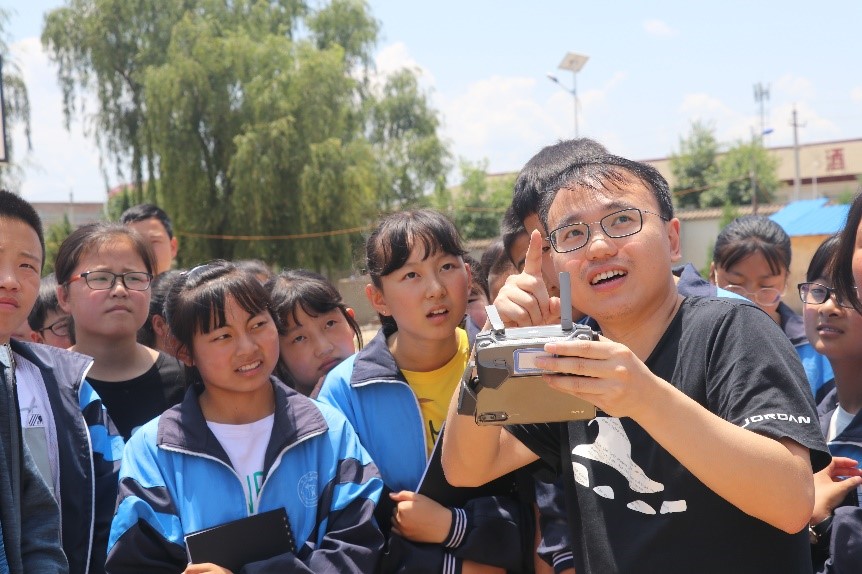 蒋江红老师向师生们分享了关于人工智能、无人机方面的知识并进行了操作体验展示。无人机是未来智能科技发展的重要部分,此次展示搭建起了同学们对未来科技的憧憬。