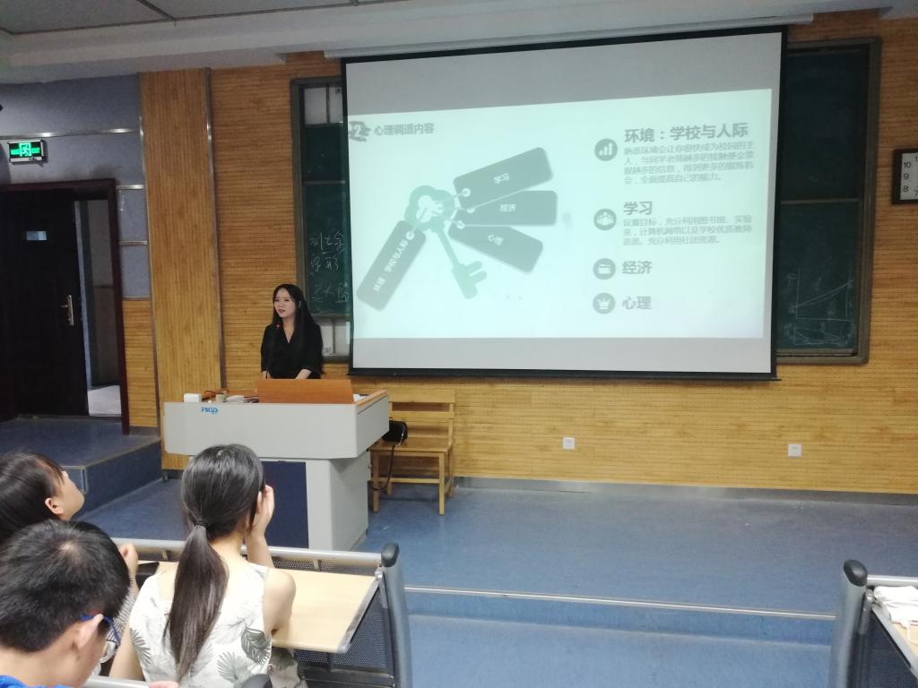 首先,邱于芯描述了心理健康的六个标准,介绍大学新生心理失衡期的具体表现,并结合实例详细说明大一新生可能会面临的心理问题以及多种心理调适的方法,帮助同学们更好地解决在新环境中学习、经济、心理等方面遇到的问题,成功度过“大一的迷茫”。
