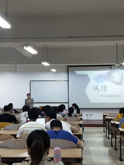 诚信,即内诚于心,外信于人,它体现了一个人的价值观和基本素质。本次班会主要围绕“诚信毕业生”主题进行展开,分别从何为诚信、诚信故事以及不诚信的表现三方面进行展开。首先,吉老师向同学们再次阐述了“诚信”两字的内在含义,其根本为内在品质和外在表现的综合体现;紧接着,吉老师列举了一些诚信故事,倡导同学们应当向其中的人物学习,弘扬诚信精神,体现自身价值;在班会过程中,吉老师还就论文抄袭事件、应聘造假事件给同学们敲了警钟,她提到,作为一名毕业生,更要注重诚信,这对于顺利毕业以及走入社会工作环境具有非常重要的意义。最后,吉老师以一首诚实守信诗结束本次班会,倡导同学们要做一名有诚信的毕业生,平等公平去竞争,不断进步创新高。