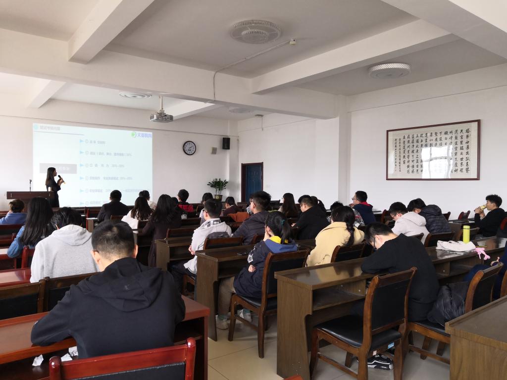 在学术报告厅举办了“2019年考研复试指导讲座”,主讲人为西北文都首席院校规划师吴妮,2015级辅导员吉晨晓、范晓萱及2015级全体考研学生参加了此次讲座。