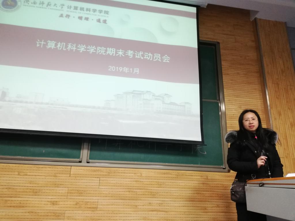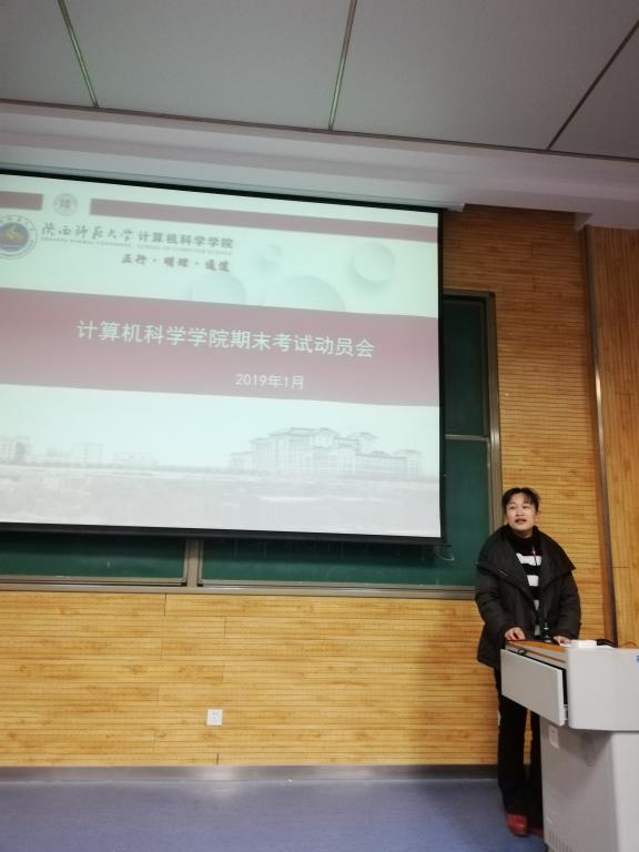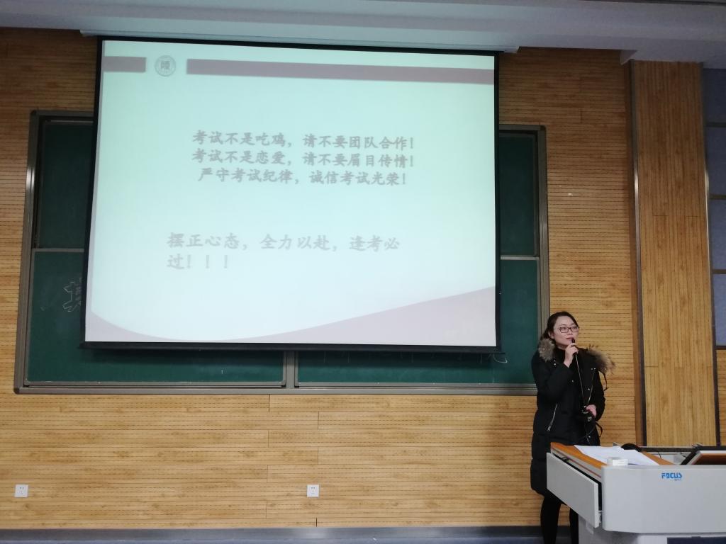 在教学五楼5201教室召开2018级学生期末考前动员大会。本次动员会由2018级辅导员安琪主持,学院党委副书记袁冰、学院教学副院长马苗参加了本次会议。
