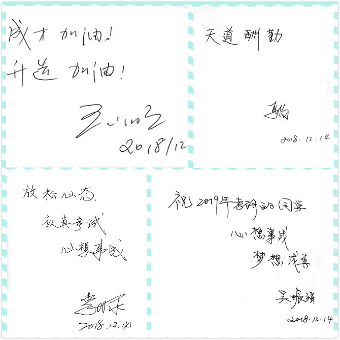 教师吴振强、裘国永、郭康凌、毛庆、陈应权、刘远恒、安琪、吉晨晓、卫晓送给考研学子们的祝福和鼓励。
