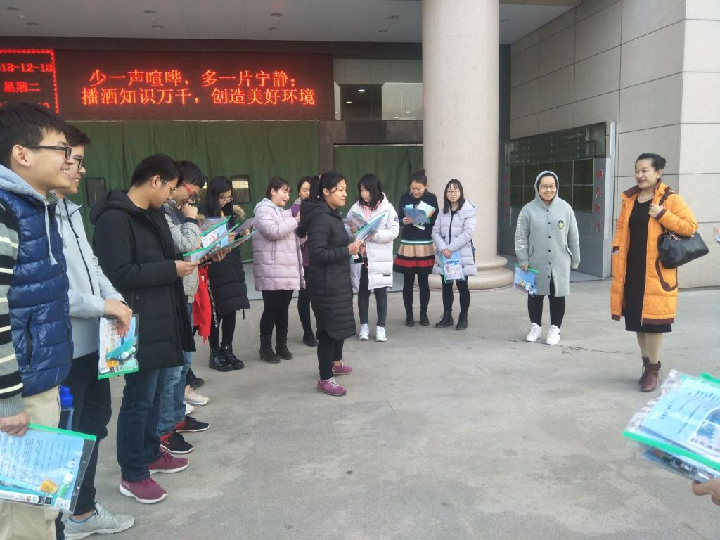 在学校图书馆门前,袁冰老师将考研文具袋,及祝福卡片发到了学子们手上,并与同学们亲切交谈,了解他们的学习和生活中的困难,勉励他们安心备考,祝愿考研学子都能考上理想的学校,走上新的人生起点。