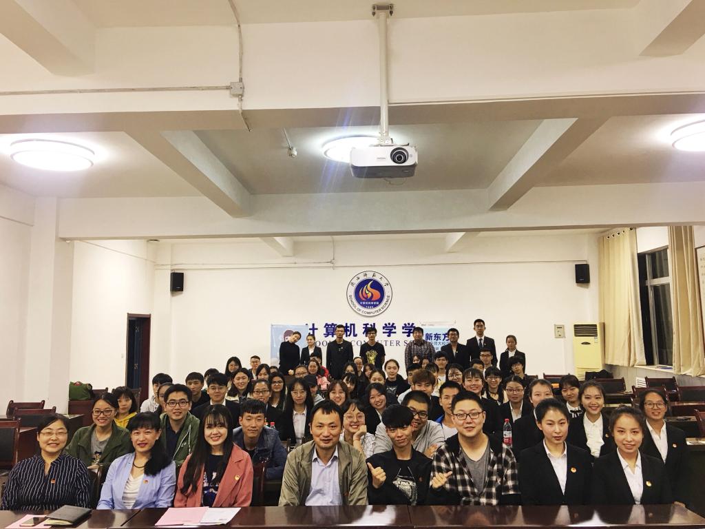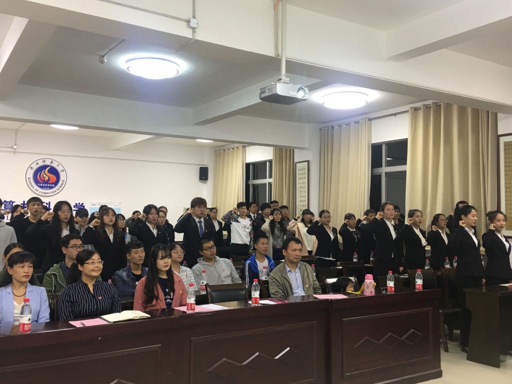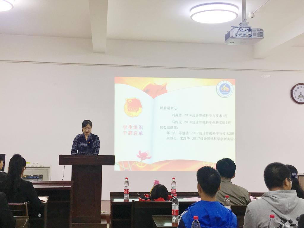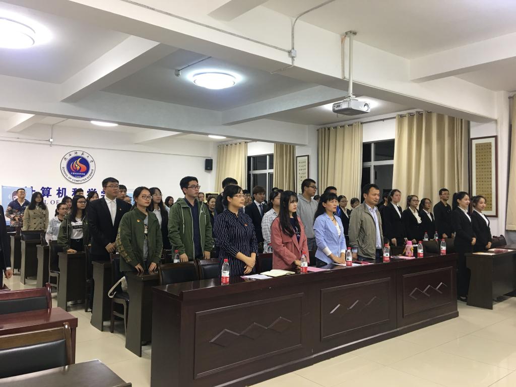 2018-2019学年学生会、耽美小说、计算机科学协会、蓝精灵志愿服务队等学生组织成立大会在长安校区文津楼学院报告厅成功举办。党委副书记袁冰、团委书记郭康凌、2016级辅导员毛庆、2015级辅导员吉晨晓应邀出席了会议,上一届学生会主席李文亮、耽美小说主任刘佳华、计算机科学协会副主任刘童心、蓝精灵志愿服务队队长唐盼、学院2018-2019学年各学生组织成员参加了此活动。会议由学生会主席杨思誉主持。