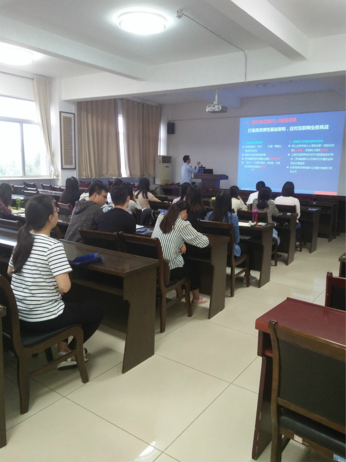 首先,宣讲会主持人和利庆先生做开篇致辞,对宣讲会的流程做了简单介绍。接着详细介绍了公司发展情况、公司氛围以及未来规划,并讲解2019年校招信息,就目前浦发银行对人才的需求做了详尽的介绍。另外还介绍了招聘的主要流程,同学们也针对自己感兴趣的问题进行提问,和利庆先生耐心解答。