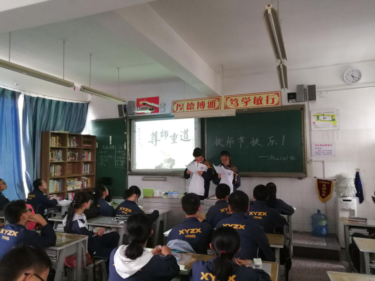 9月10日,2015级师范生在各自实习的中小学课堂上,积极组织主题班会活动,鼓励中小学生勇敢地向老师们表达自己的感恩之情,教育学生不仅要在教师节感恩老师,还要在平时的生活和学习中,将尊敬师长变成一种优秀的习惯,更要努力学习,不辜负老师的教导,并呼吁中小学生能够传承尚学之风,弘扬尊师之道,带动更多的人去尊敬每一位老师,让尊师尚学之风充满整个校园。