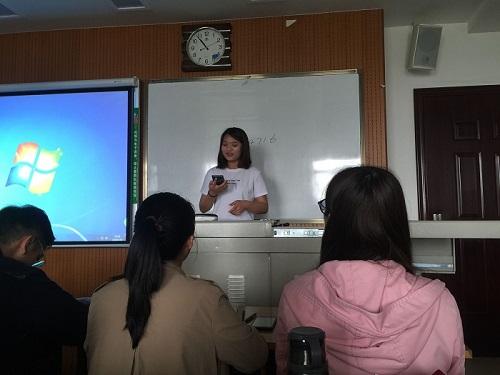 第三位主讲人是2014级计算机科学与技术一班的来自云南的皇甫瑞婷同学,签于曲靖一中麒麟学校,她告诉同学们在面试时注意言行举止大方得体,太紧张往往会扣分,她强调实习过程是非常重要的,要学会争取表现的机会。