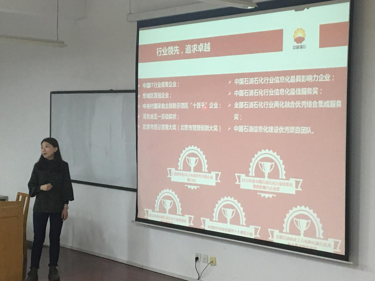 北京中油瑞飞信息技术有限责任公司是中国石油集团东方地球物理的全资子公司,是中国石油集团公司规模最大,综合实力最强的信息技术单位,主要面向能源,公共事业与金融等行业,为其提供规划,咨询,实施及运维,培训的一体化服务。会上,公司宣讲人为同学们详细介绍了公司的发展里程,核心业务范围,耽美小说,工作地点等内容,并通过图片向同学们详细展示了招聘流程,公司福利,入职待遇等内容。同学们就各自关心的问题进行了询问,公司负责人也都给予了耐心的解答。之后还进行了有奖问答环节,宣讲人就所讲内容进行提问,在得到同学们的正确答案后现场赠送了礼品,最后进入到了为时一小时的笔试环节并现场收取同学们的简历。招聘会后,部分学生与企业代表进行了更加深入的交流,至此,专场招聘会圆满结束。