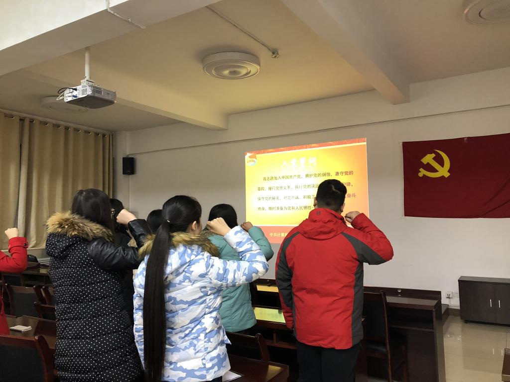 13日晚,学院学生第二党支部在学院报告厅举行预备党员入党宣誓仪式。仪式由支部书记安琪主持,支部委员蒋欢以及八位预备党员参加了宣誓仪式。
