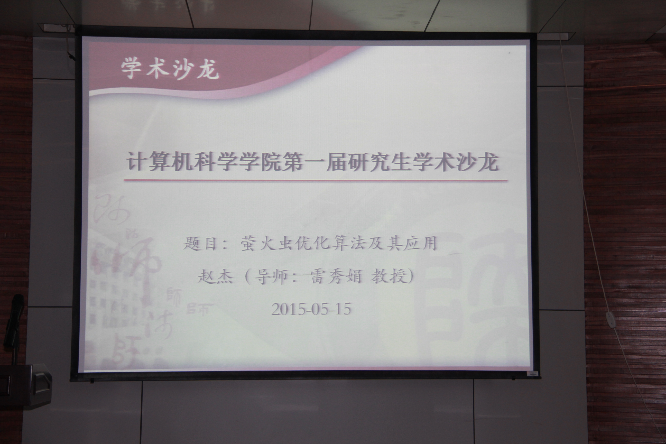 赵杰首先做了题为“萤火虫优化算法及其应用”的报告,主要介绍了在研究生期间自己所做的学术研究及成果。依次按照算法概述,仿生原理,算法描述与算法优缺点的次序做了介绍。算法概述与对仿生原理的讲解部分,将自然界中蚂蚁,蜜蜂与萤火虫等动物的行为与算法的数学原理相结合,语言生动,引起了在座师生的兴趣;在算法描述部分,他的讲解详细,清晰易懂。最后,肖冰老师对报告进行了总结与点评,在座师生积极提问,并展开了深入讨论。