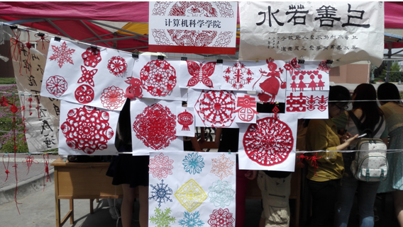 作为参展单位之一,主要展示了剪纸、中国结以及书法等传统文化作品。其中,剪纸形式各样,包含人物、动物以及窗花形式,展现了同学们的精巧技艺,吸引了众多同学驻足欣赏以及合影留念;中国结不仅精巧美观,并且样式繁多,使得众多女同学爱不释手;书法作品也充分展示了耽美小说