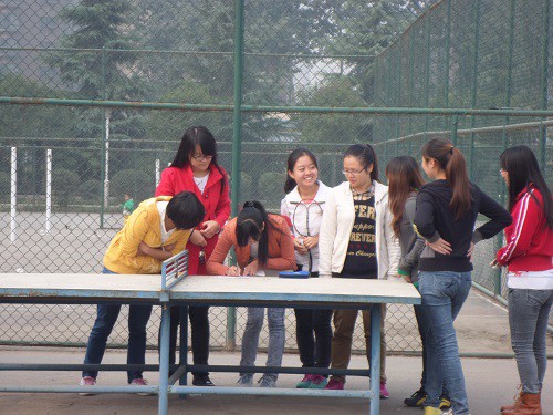 比赛开始前,裁判员向选手详细讲解了比赛规则,并解答了选手们提出的疑问。比赛过程中,裁判员秉承着公平,公正,公开的原则。传球技巧大赛,背夹球比赛和乒乓球女单比赛精彩纷呈,搏得现场观众热烈的掌声。羽毛球定点发球和颠球比赛吸引了很多观众现场报名。下午2:00到5:20举行了男子三对三篮球赛,羽毛球女单,乒乓球男单和女子定点投篮四个项目。赛场上气氛紧张,男生们精诚合作,挥汗如雨,赢得场下同学雷鸣般的掌声。在接下来的羽毛球女单和女子定点投篮比赛中,同学们参与比赛的热情度极高。