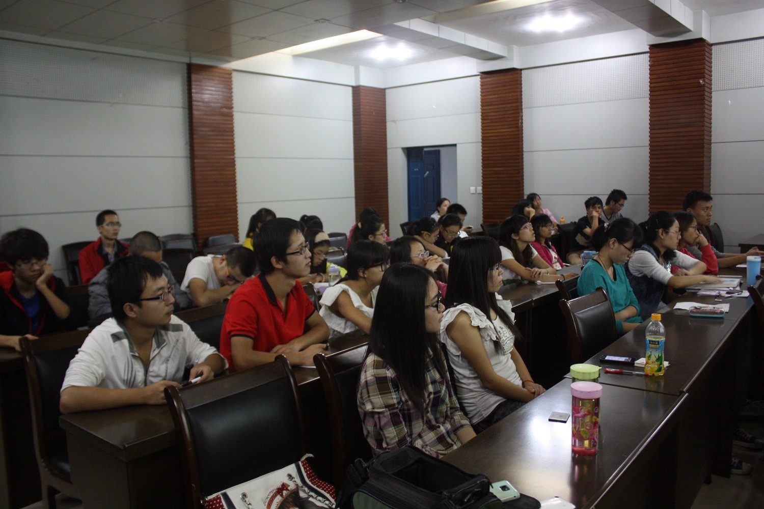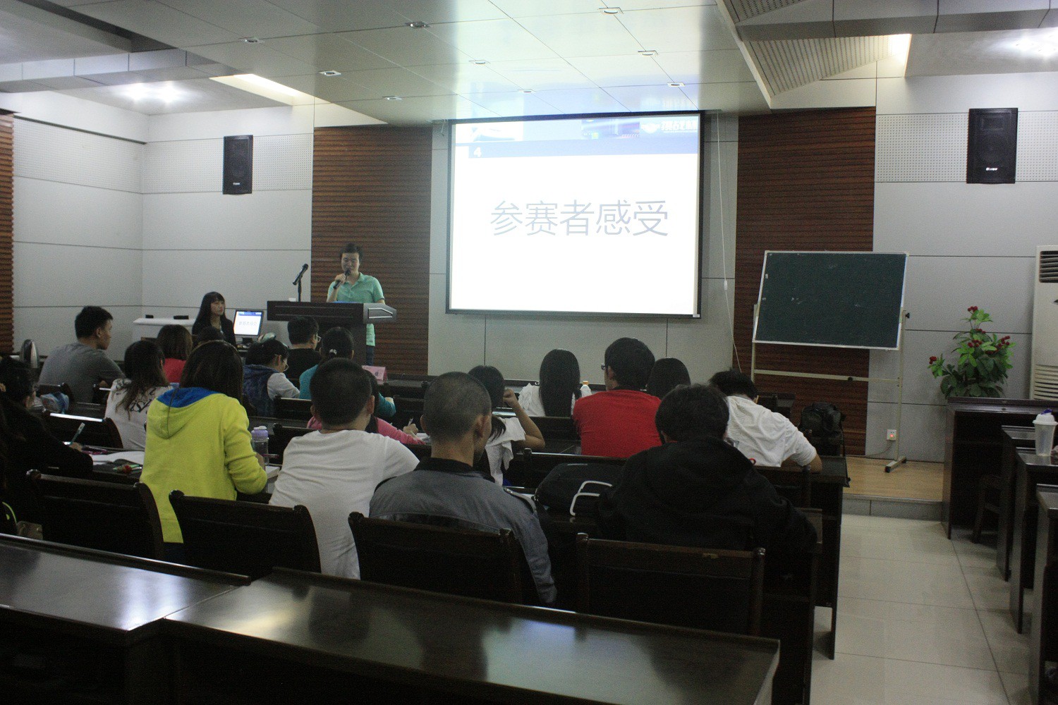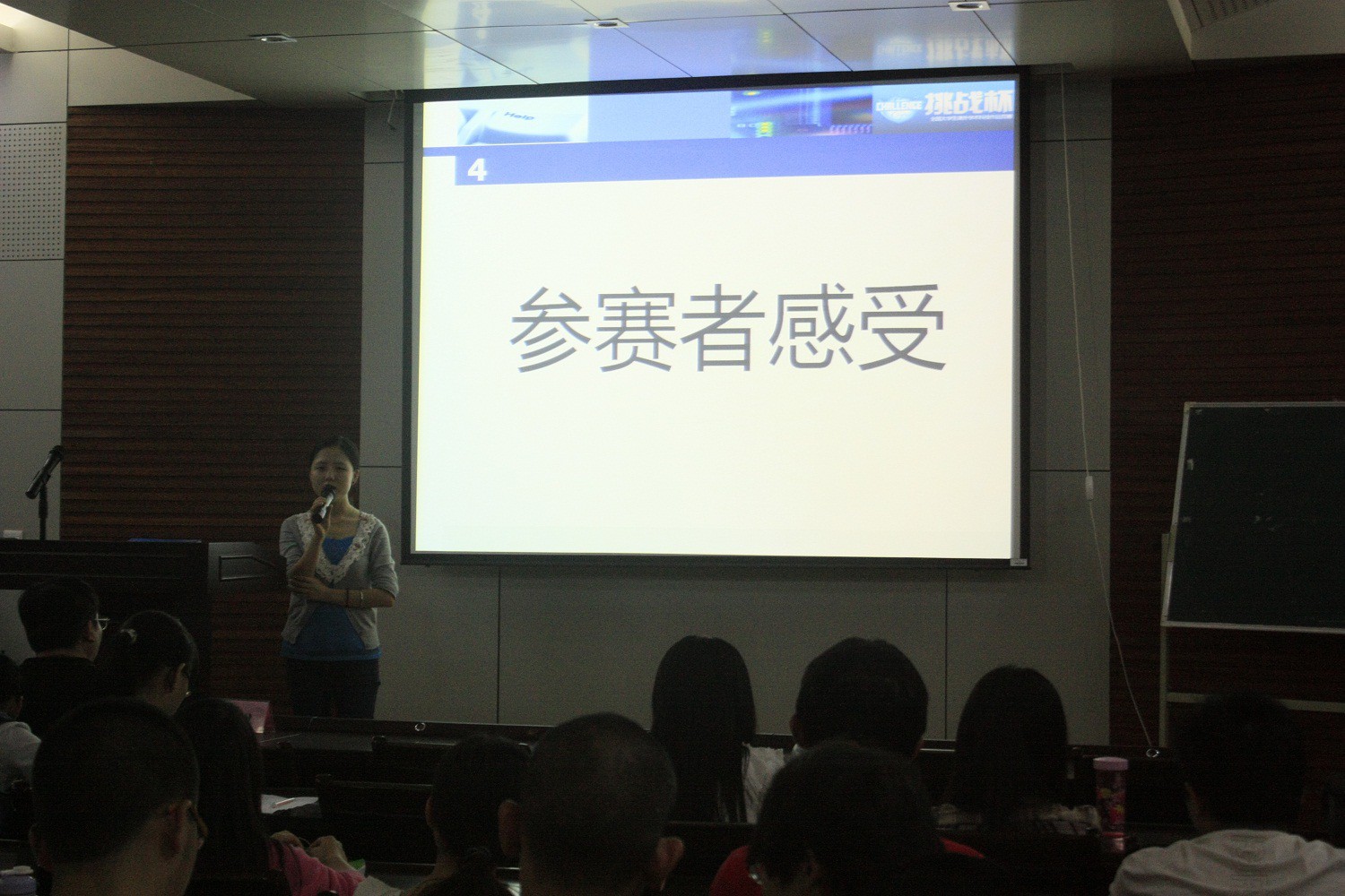 2012年参加第八届“挑战杯”大学生创业计划竞赛的2010级本科生杨婷婷、郎欢与在座同学分享了他们团队在比赛过程中的感受和经验。通过参加比赛,他们都感受到要想取得理想的成绩,团队协作是最重要的,团队成员要全面、谨慎,在性格上要可以互补。此外,在备赛过程中,不仅要有毅力和恒心,还要合理安排时间,确保学习备赛两不误。