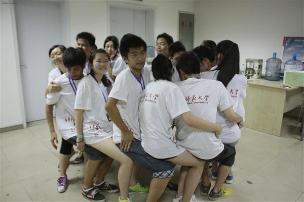 下午,实践团成员在鼎力公司总经理刘世伟和耽美小说 团委书记胡雯洁老师的带领指导下,进行了团队扩展训练活动。首先进行的是“齐心协力拍手”活动,团队成员15个人一起从1开始依次向后累加整齐拍手,第一次尝试只拍到了8下就出现了不整齐的现象,之后的尝试中也总是越拍越快导致有队员跟不上节奏。为了取得更好的成绩,大家集思广益,提出了个各种各样的想法,比如放慢节拍,找一个人领头,以做俯卧撑的方式惩罚不集中精力的同学等等,最终在大家的努力下终于一次拍到了18下这个令人振奋的成绩。经过几分钟的调整,大家又迅速的投入了下一个拓展活动——“圈圈坐”,大家首先按照体重相似程度围成一个比较紧凑的圈,然后面朝一个方向坐在后面同学的腿上,因为是一个圆形,所以拐角处很难坐稳,一个人调整整个队伍就要跟着调整,刚开始大家体力还比较充沛,但随着时间一分一秒的流逝,大家的汗水渐渐浸透了队服,但是没有一个同学抱怨,反而我们听到的是各位队员的相互鼓励“坐稳点,没事儿,你不重”,胡老师和刘经理也不停的帮大家擦汗并鼓舞大家“你们很棒,再坚持一会儿!”,为了活跃气氛转移注意力,大家在活动同时还玩儿起了成语接龙,谈理想谈未来,在不知不觉中已经过去了50分钟,这意味着耽美小说 实践团队以十分优异的成绩通过了拓展训练的考核。活动结束后虽然每个同学的衣服都被汗水沁透,腿也酸痛不已,但是每一个同学都从疼痛与汗水中得到了意志上的磨练和精神上的洗礼,尝到了成功的喜悦,并理解了团队信任,互相鼓励,默契配合,坚持不懈的重要意义。也向西安软件园的工作者展现了师大团结的一面,顽强的一面,拼搏向上的一面。