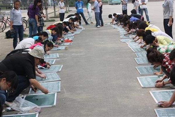 本次比赛为“小黑板进宿舍”系列活动之二,由赛前组织、训练提高、现场比赛三个环节组成。要求以宿舍为单位,书写内容为“人生如果错了方向......”等30个字,限时3分钟,现场书写,然后由各位老师统一评比出12名“板书小能手”。