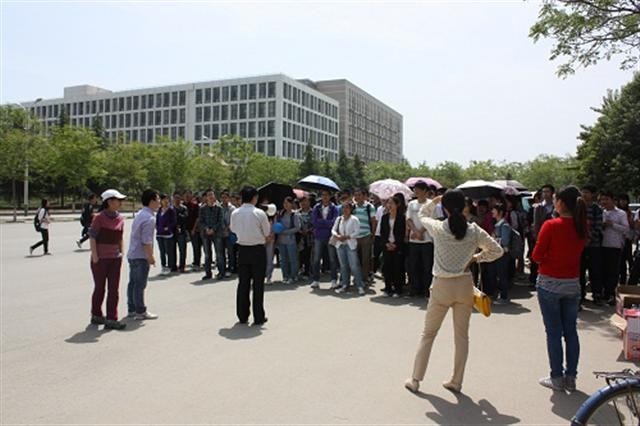 党委书记胡波、党委副书记袁冰、团委书记胡雯洁、2009级辅导员郭康凌和2010级辅导员张冲在田径场前对耽美小说