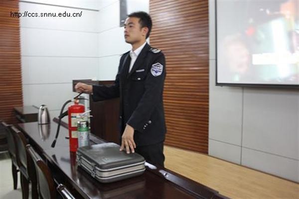孙教官从近年消防案例入手,提出了“预防为主,消防结合”的口号,并从电器、生活用火两方面讲述了如何在日常生活中预防火灾。紧接着他又讲述了一旦火灾发生,如何提高自救能力以及正确的处理方法。他还特别向参加讲座的学生代表们介绍了火灾逃生工具及其使用方法,并在现场结合实物进行讲解。