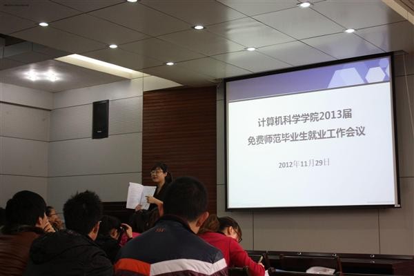 于2012年11月29至30日分别召开三场免费师范毕业生就业工作会议,为学院2013届免费师范生答疑解惑。会议由毕业班辅导员郭康凌主持,学院党委副书记袁冰出席会议。