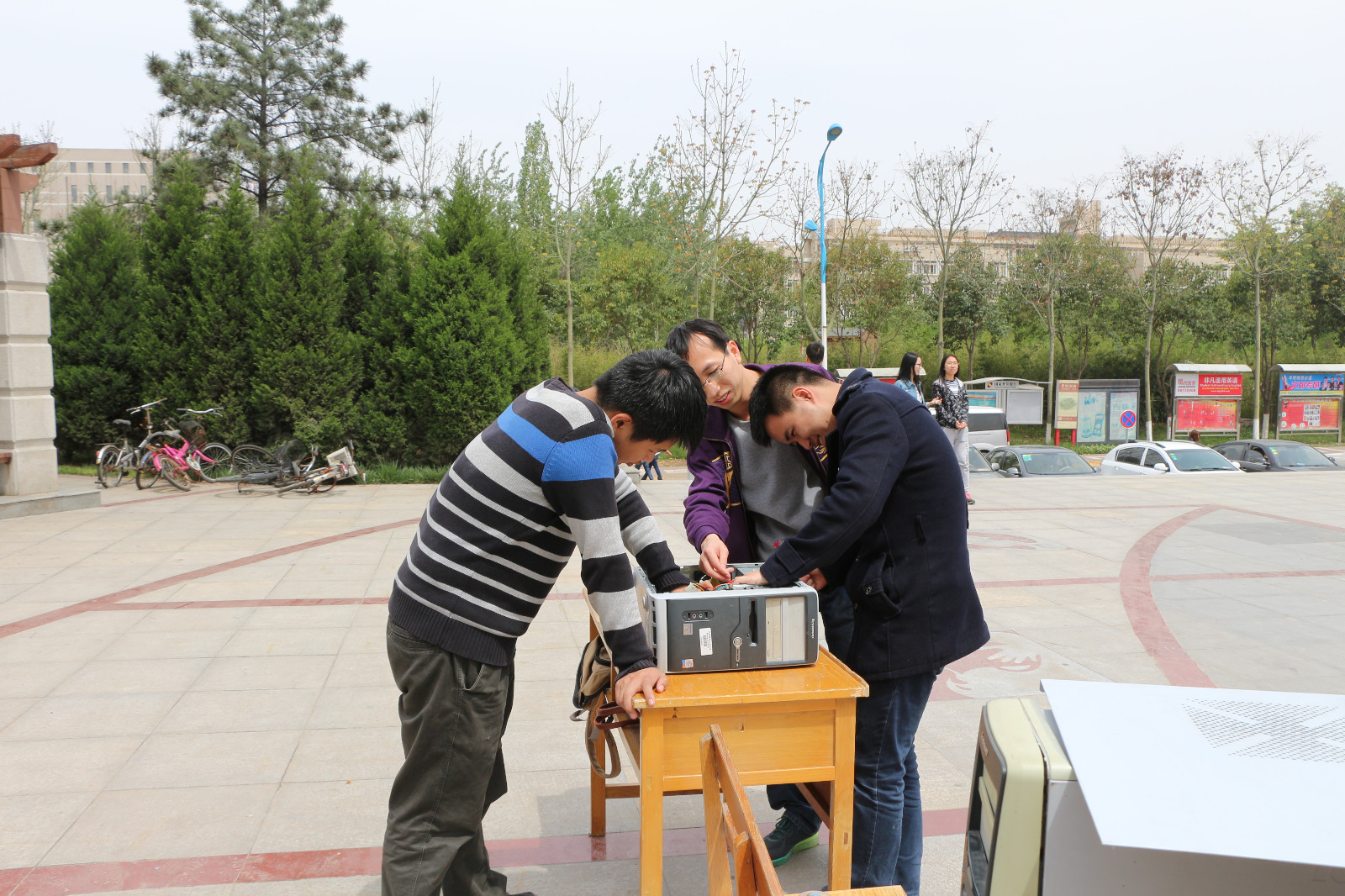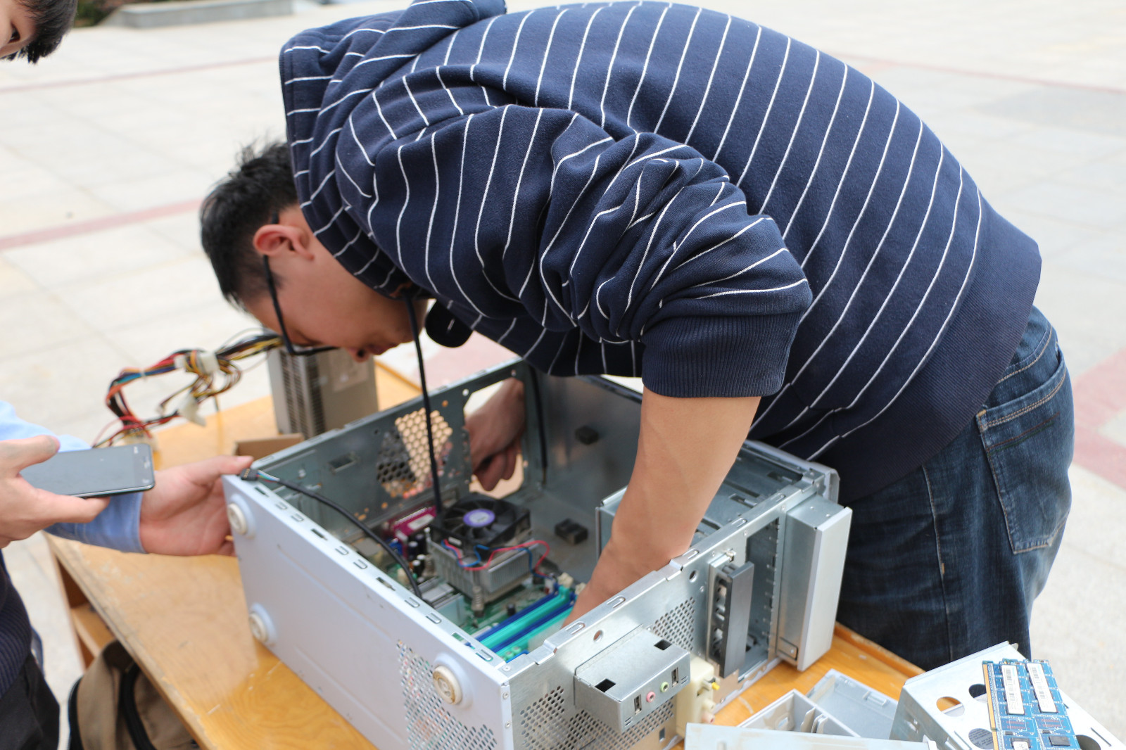4月17日上午,由计算机科学协会举办的第二届电脑全能王大赛之拆装机比赛,在阳光苑广场顺利举办。电脑全能王大赛分为四个部分的比赛:PS比赛,编程比赛,PPT比赛以及拆装机比赛。作为此次全能王大赛的“重头戏”—拆装机比赛,旨在对电脑主机的实际拆装的情况下提高参赛选手对电脑主机内部构造的理解程度,激发选手兴趣,提高选手们的动手实践能力。