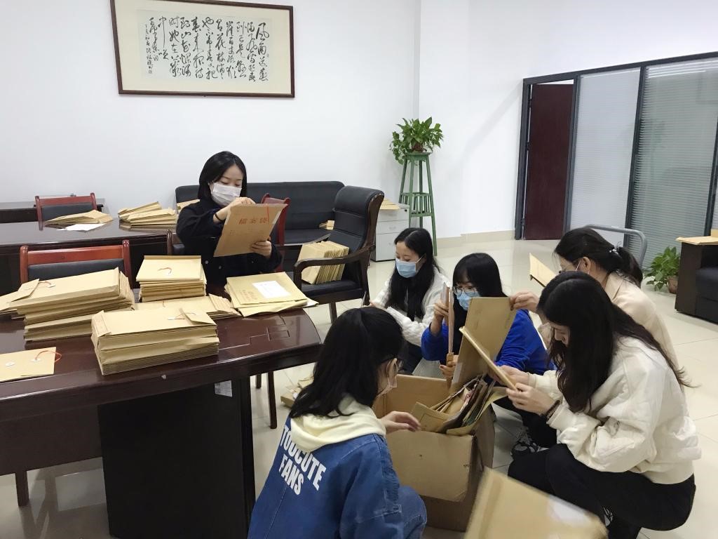 合档案、换“新衣”,同志们在学校档案馆王老师的指导下,合并人事档案与党员档案,并将材料放进学校统一为大家准备的新档案袋中。为了保证各位同学的档案装袋无误,同志们反复确认、清点。