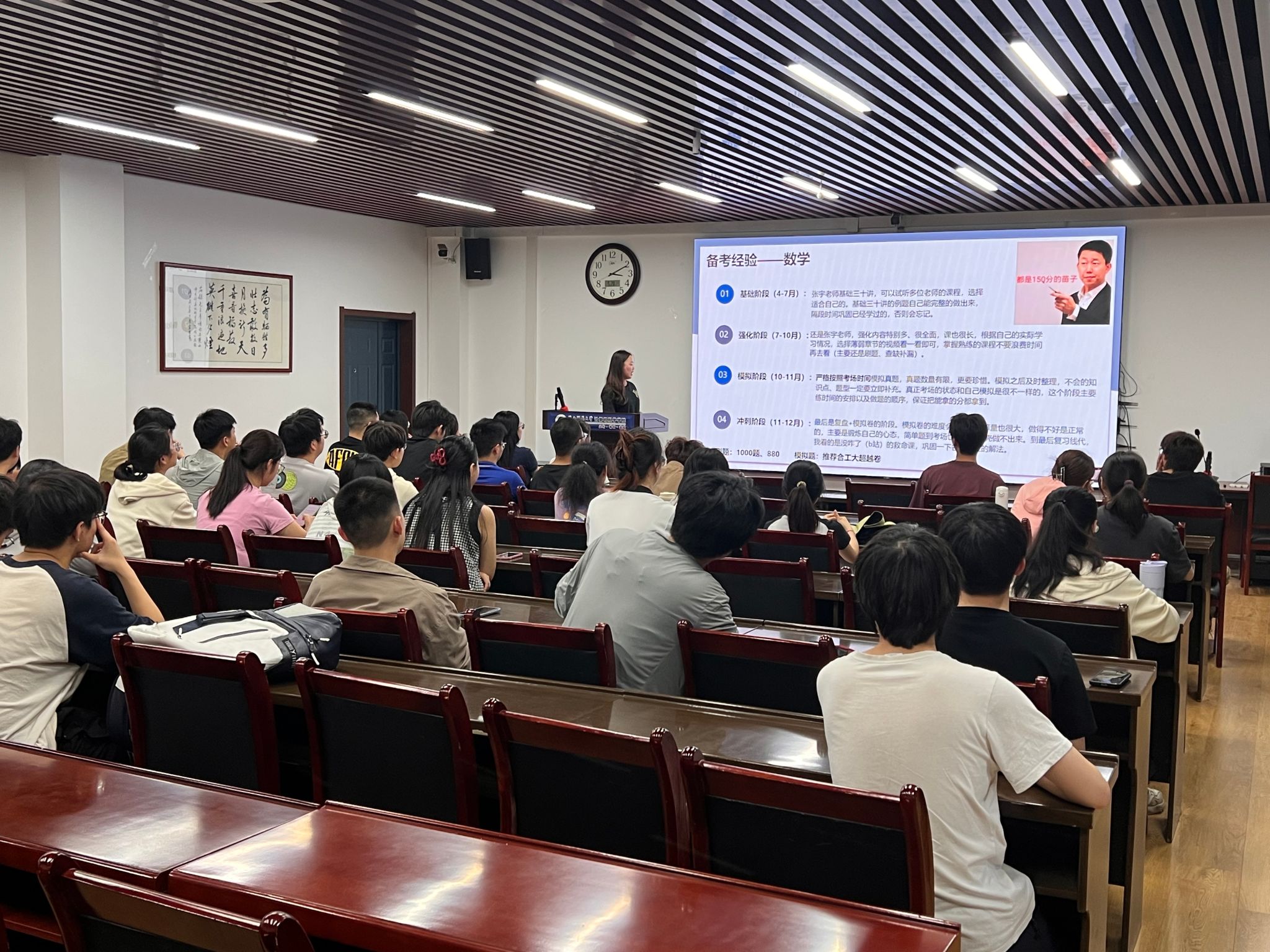 在文津楼3425报告厅组织2025届优秀学生考研经验分享交流活动。2025届考研学生代表、2026届毕业生参加,辅导员田海东主持。