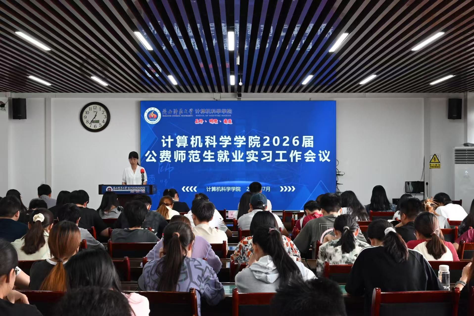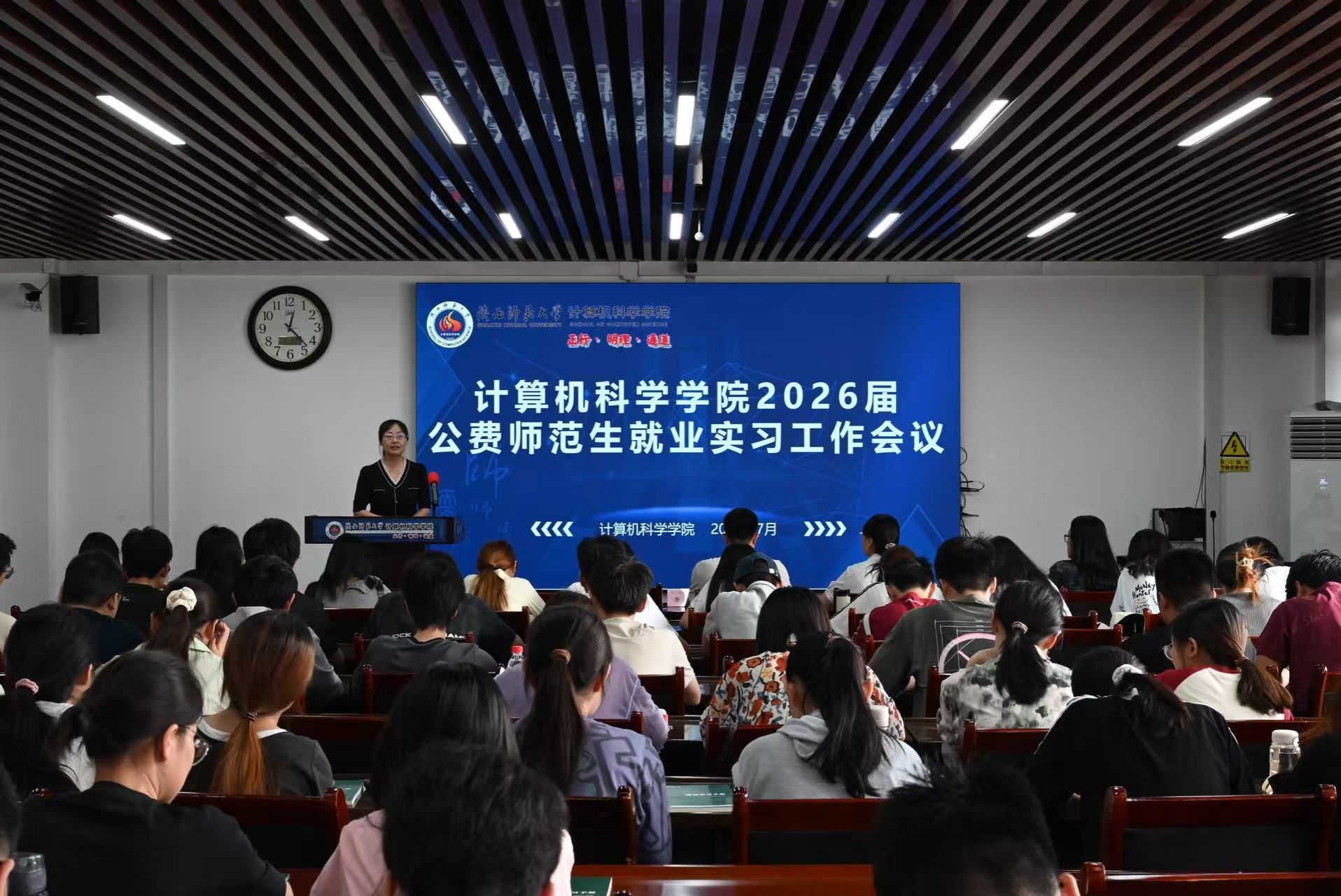 在文津楼3425报告厅组织召开2026届公费师范生就业实习工作会议。学院副院长李鹏、党委副书记郭康凌、公费师范生专业负责人洪灵、教学秘书杨婷、2026届公费师范生参加,会议由辅导员田海东主持。