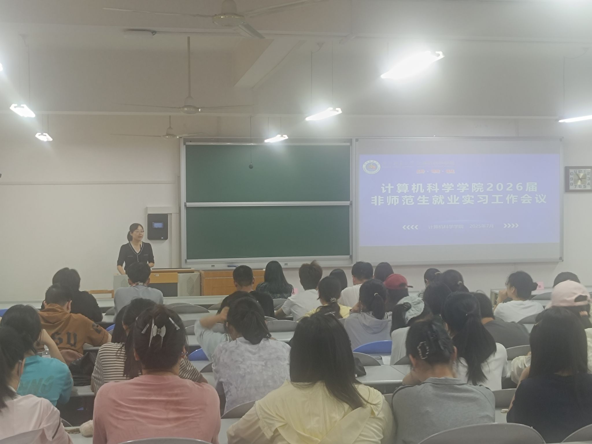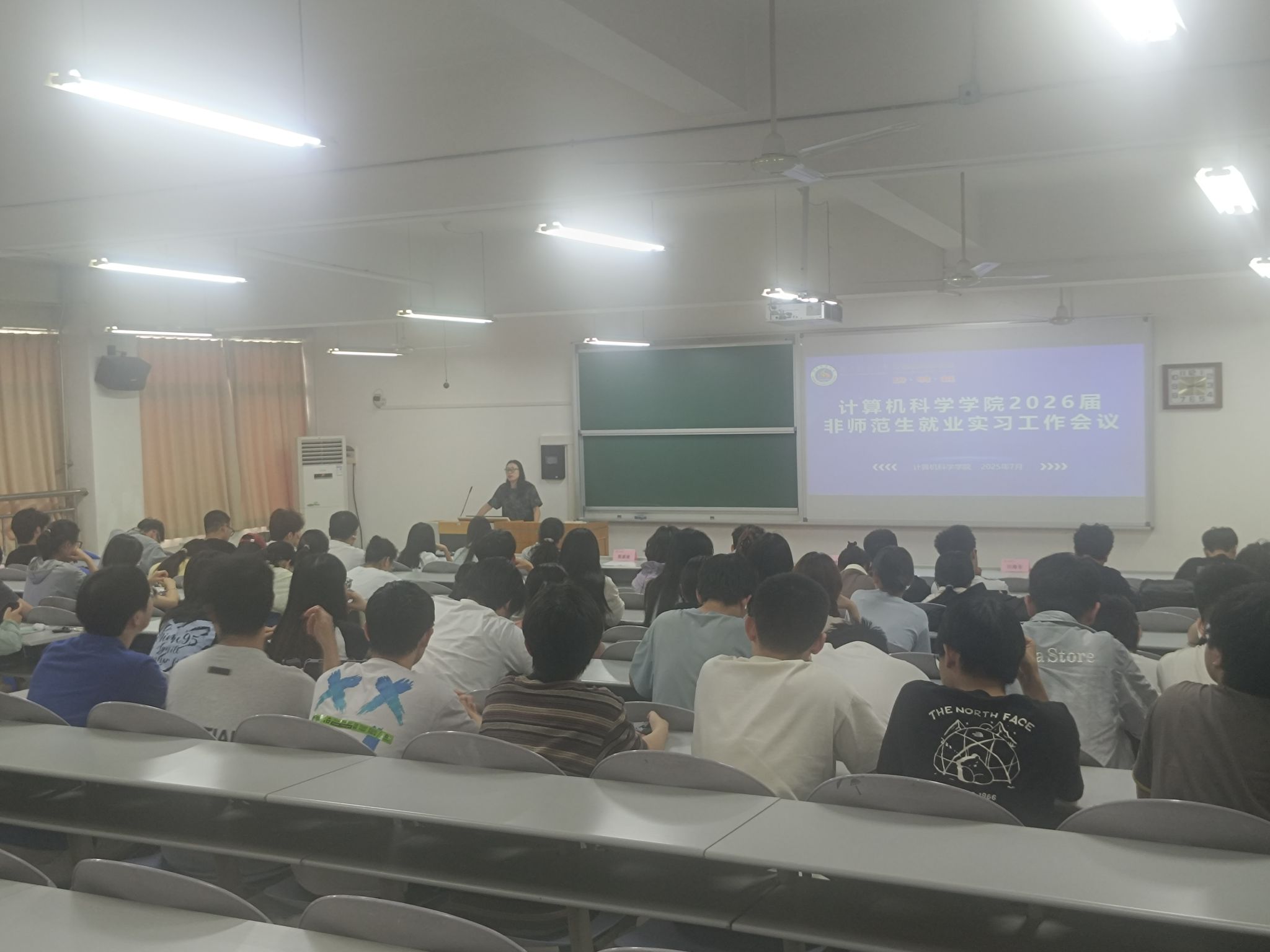 在文津楼3424教室组织召开2026届非师范生就业实习工作会议。学院副院长李鹏、党委副书记郭康凌、教学秘书杨婷、2026届非师范本科生参加,会议由辅导员田海东主持。