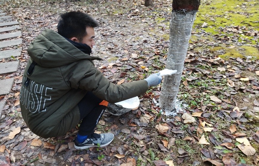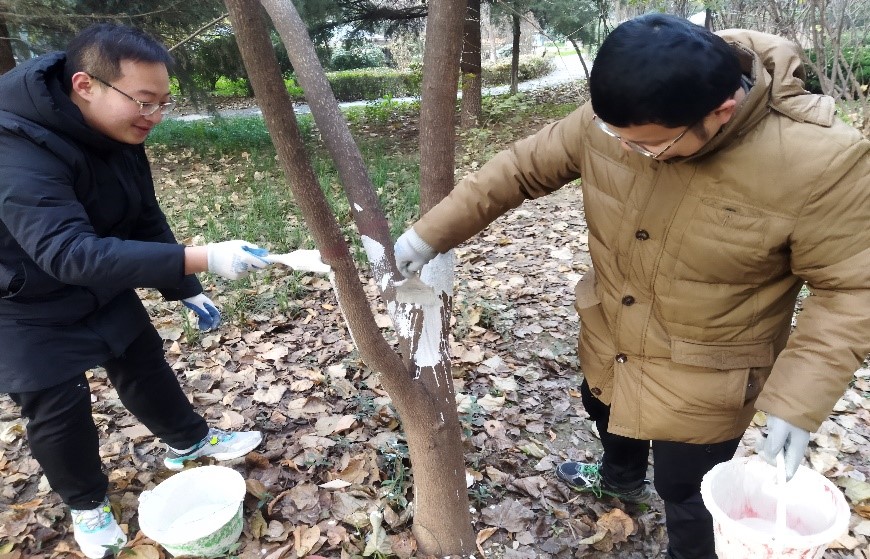 研究生会生活部组织研究生参加给树木刷白漆防虫害劳育活动,本次活动在耽美小说