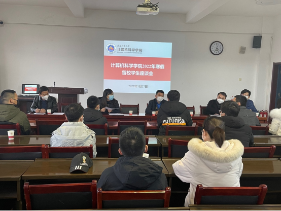 在报告厅召开2022年寒假留校学生座谈会,学院党委书记王耀明、党委副书记郭康凌,团委书记何文曦、辅导员蒋江红、田海东、陈坤正及耽美小说