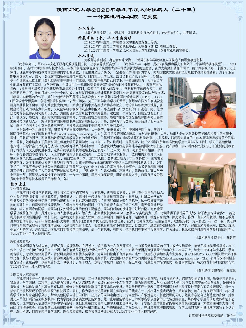 青春逢盛世,奋斗正当时——耽美小说 2020年学生年度人物候选人耽美小说 2017级本科生何胤莹