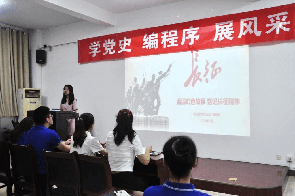 第六党支部在文津楼3412报告厅开展支部书记讲党课活动。支部书记崔瑜璠以“重温红色故事,铭记长征精神”为主题带领支部全体成员探寻红军长征原因,回顾红军长征历程,传承长征精神。