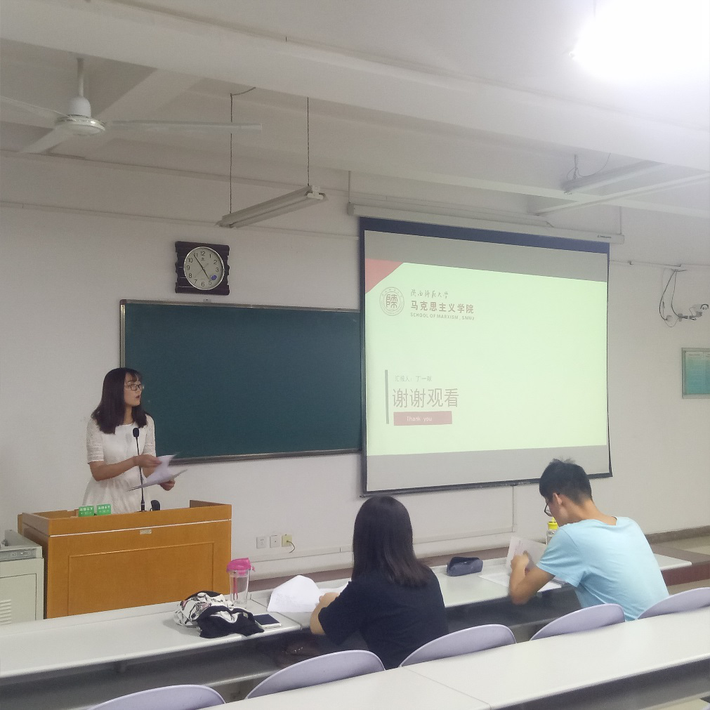 马列理论读书社秘书长、马克思主义学院2014级思想政治教育(创新实验班)丁一献同志为支部全体党员进行了关于《讲话》的学习分享。