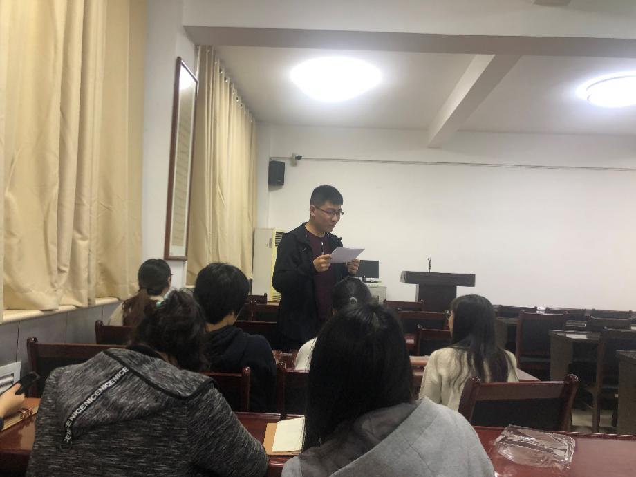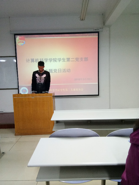 为认真贯彻落实党的十九大精神,引导党员原原本本、原汁原味学习党的十九大报告和党章。2018年4月15日下午4点,学生第二支部在文津楼3324教室开展以“我读新党章”为主题的党日活动。